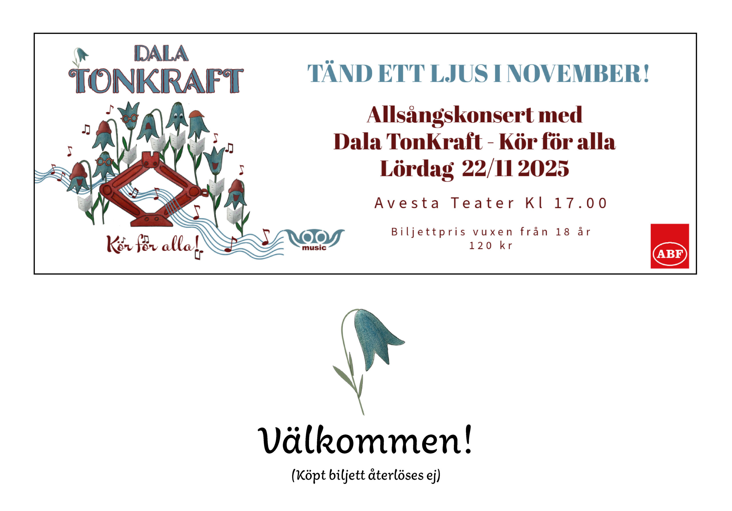 Konserten sker i samverkan med studieförbundet ABF. (Du kan läsa mer om kören Dala TonKraft under fliken musicerande)